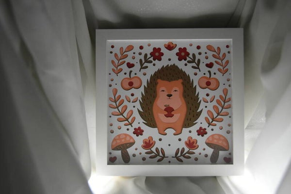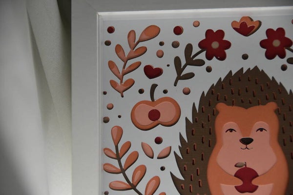 Nestled among toadstools, apples, and golden blooms, this sweet squirrel celebrates the heart of autumn in a beautifully layered paper scene. Each element is hand-cut with care, capturing the richness of the season and the gentle curiosity of woodland life.