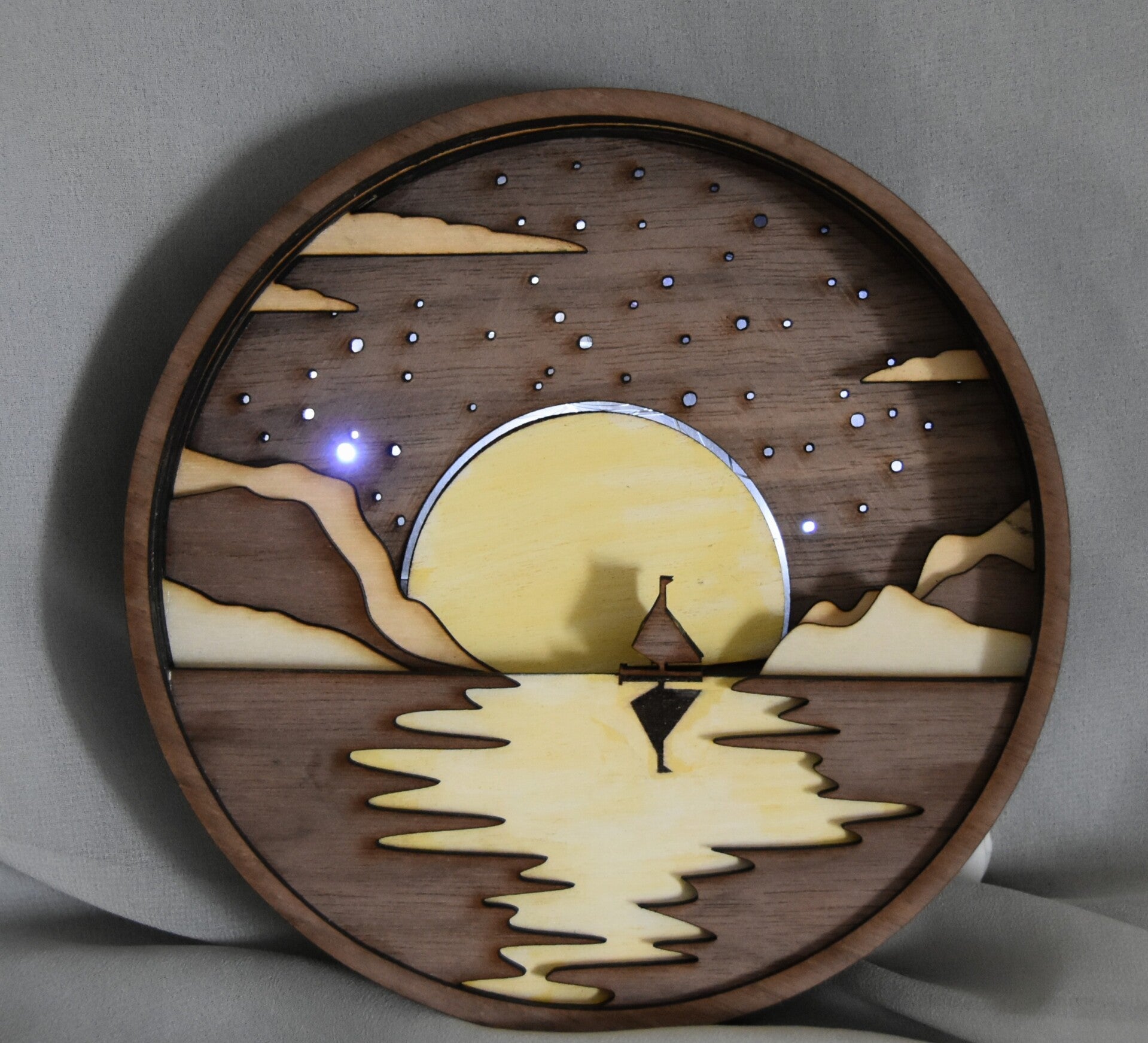 Moonlit Voyage – Layered Wooden Lighted Artwork