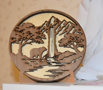 A quiet wanderer drifts along the riverbank, cradled by ancient trees and the soft hush of a far‑off waterfall. This layered wood artwork becomes a tiny woodland portal—each laser‑cut contour whispering its own tale of solitude, strength, and the steady heartbeat of the wild.